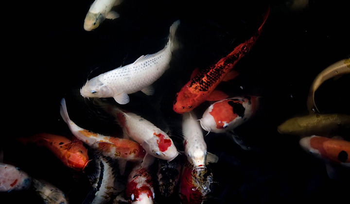 สี และความเพลิดเพลินในสีที่สวยงาม บางครั้งเราอาจลืมซื้ออาหารให้ปลาคาร์พ ก็ สามารถใช้พวกอาหารทั่วไปเช่น อาหารเม็ดสำหรับปลากินพืช หรืออาหารปลาดุกก็ได้ ถ้าไม่มีจริงๆ ข้าวสวย หรือขนมปังแก้ขัดไปก่อนก็ยังได้ แต่ต้องระวังอย่าให้น้ำเสีย ปลาคาร์พจะกินแก่งมากเราอย่าตามใจเขา เขาอิ่มยังต้องการกินอีก เพราะการกินมากเกินไปจะทำให้ปลาคาร์พถ่ายของเสียมากทำให้น้ำเน่าเร็ว เมื่อมีตระไคร่น้ำเกาะขอบบ่อ ไม่ควรขัดออก เพราะนั่นเป็นสารอาหารอย่างดีของปลาคาร์พ และยังเป็นการรักษาระบบนิเวศน์ได้อย่างดี อากาศหนาวไป หรือร้อนมาก ปลาคาร์พจะกินอาหารน้อยหรือไม่กินเลย อย่าฝืนครับ โชคดีที่บ้านเรามีหน้าหนาว แบบไม่หนาวมากและมีไม่นาน ต้องคอยระวังถ้าปลากินอาหารไม่หมด จะเหลือเศษอาหารทำให้น้ำเสียได้ต้องคอยตักออก เลี้ยงสัตว์เลี้ยงที่มีชิวิต ทุกอย่างต้องดูแลอย่างดีนะครับ ต้องคอยสังเกตว่าปลาคาร์พมีอาการแบบใหน ผิดปรกติไม๊เป็นต้น อ๊อกซิเย็นต์ ต้องมีตลอดเวลาทั้ง กลางวันหรือกลางคืน บ่อมาตรฐานนั้นช่างเขาจะเน้น ระบบ แอร์เจ๊ท ให้อยู่แล้ว สร้าง อ๊อกฯ ได้ดีอยู่แล้ว